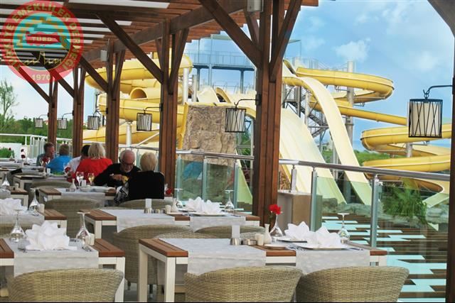 Tesisin denize 350 m uzaklıkta 150 m uzunluğunda, kum ve çakıl karışık bir plajı bulunuyor. Tesisin sahil kısmında toplamda 9 adet slide olan (6 adet yetişkin, 3 adet çocuk) aquapark mevcut. 65.000 m² alan üzerine kurulmuştur.