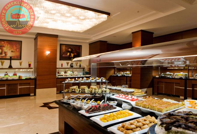 Sabah ve akşam yemekleri açık büfe olarak servis edilmektedir. Tesis genelinde yiyecek ve içecekler ücretlidir.Oda servisi 24 saat olup ücretlidir. Akşam yemeğinde tüm içecekler ücretlidir.