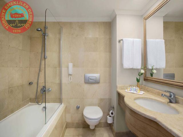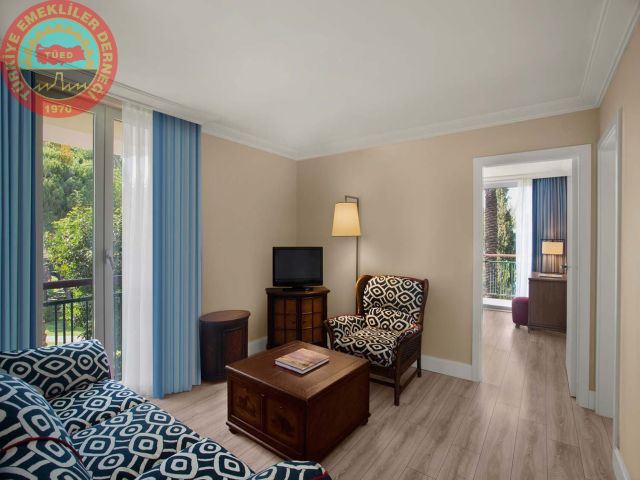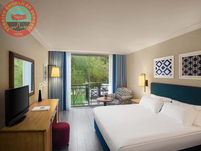 Odalarda kasa, LCD TV, telefon, çay-kahve makinası, minibar, küvet, bornoz, terlik, saç kurutma makinası, kablosuz internet, balkon, teras ve merkezi klima bulunmaktadır.