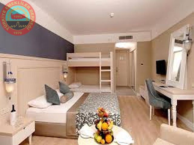 Aile Odası : ara kapılı iki ayrı oda, 2 ayrı banyo ve WC, bir odada çift kişilik yatak ve sofa diğer odada tek kişilik 2 ayrı yatak mevcuttur. merkezi klima ( belirli saatlerde ), uydu TV yayını, direk telefon, banyoda telefon, minibar, WC, duş, saç kurutma makinası, kiralık kasa, balkon mevcuttur. Tüm odalar seramik parke zemin kaplıdır.